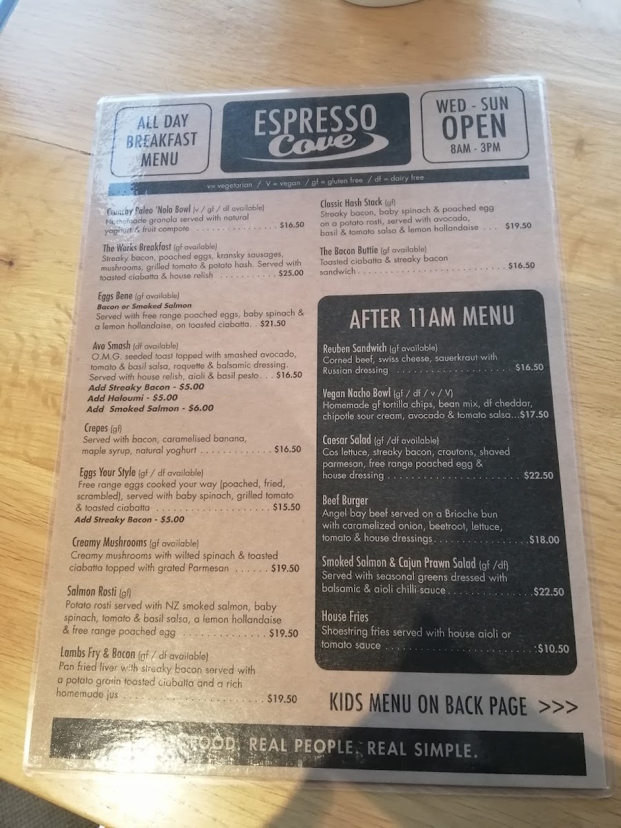 Espresso Cove Taupo Menu